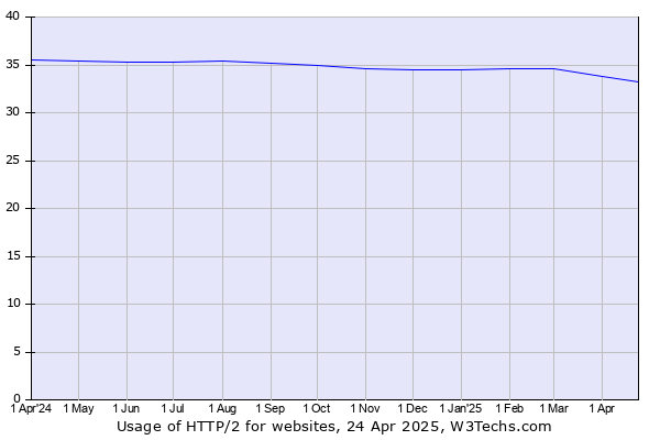 Au 1er novembre 2019, HTTP/2 est utilisé par 41,4% de tous les sites web selon W3Techs.